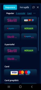 - Card preplătit (Paysafecard, Paysafecard Skrill);